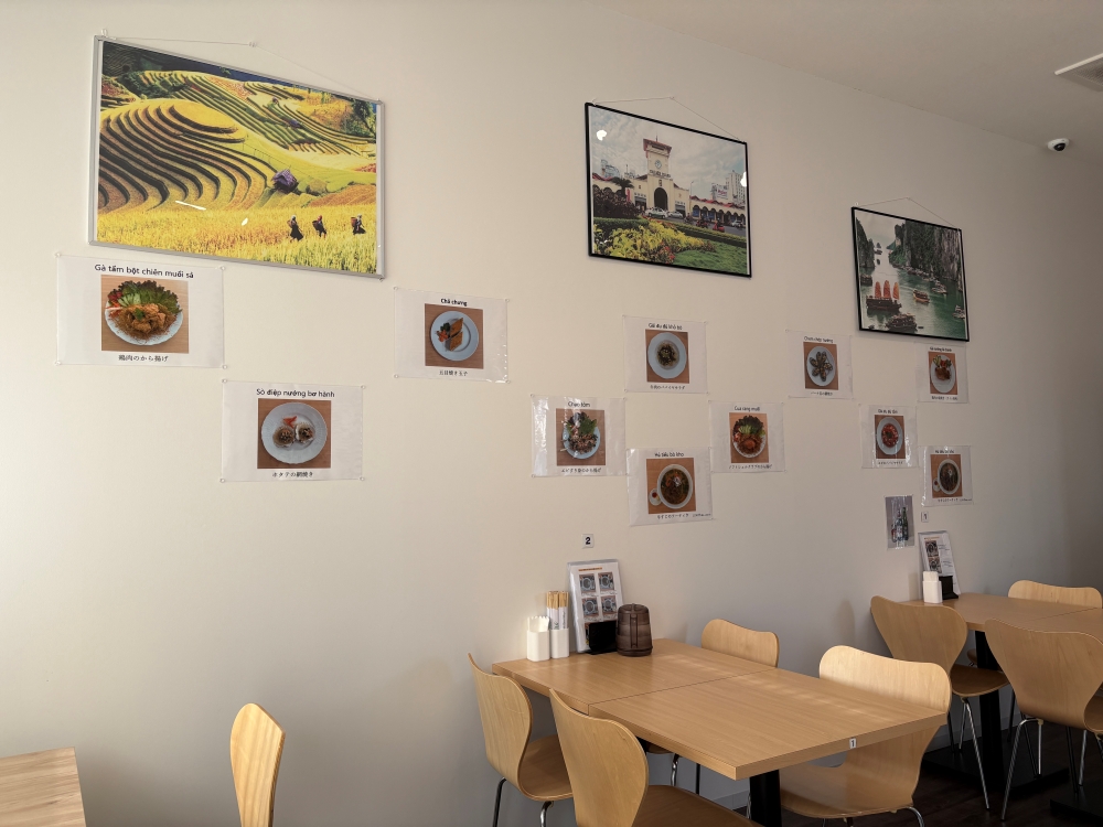 壁には料理のメニュー写真やベトナムの風景写真が飾られており、店内のBGMには異国情緒あふれる音楽が流れていました。