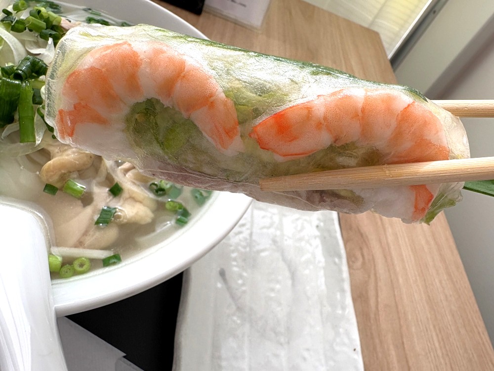 今回注文したのは、鶏肉のフォーと生春巻きのセット。