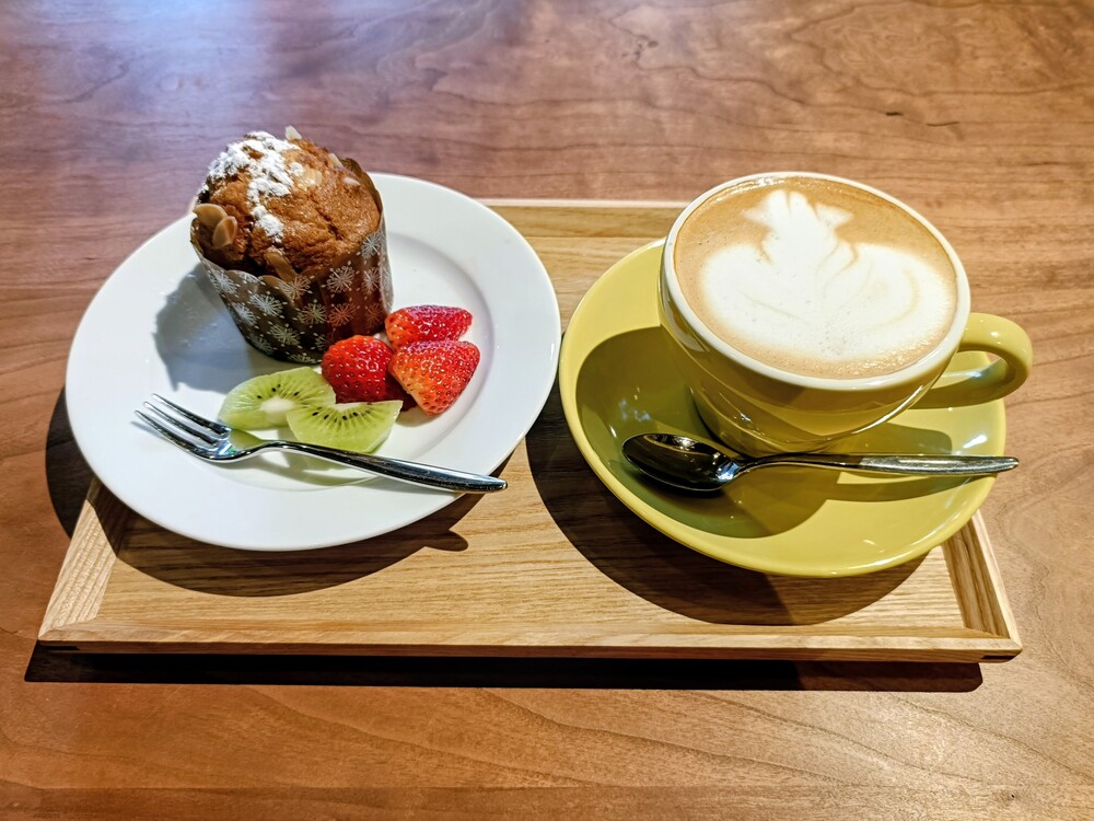 食後のデザートには手作りマフィン、カフェオレをいただきました。