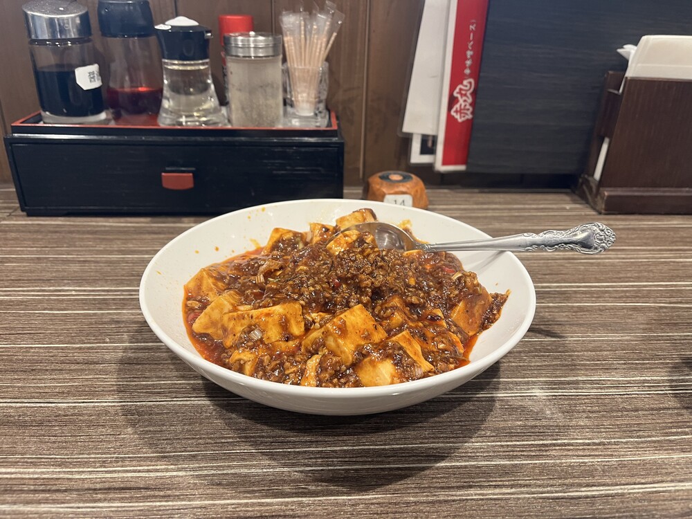 何度でも食べたいのが麻婆豆腐です。お店の奥さんにおすすめを聞いたところ、麻婆豆腐がいいとのことで注文することに。