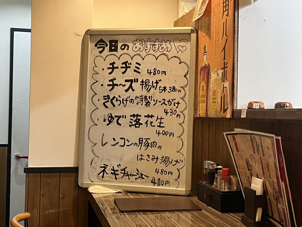 まずうれしいのが、今日のおすすめメニューが手書きで毎日ホワイトボードに更新されていることです。手書きだから、アットホーム感があっていいですよね!