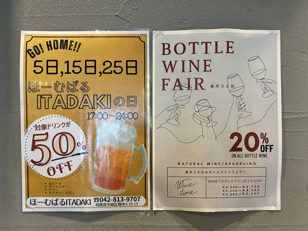 ディナータイム(17:00〜24:00)限定で、5日・15日・25日はITADAKIの日。