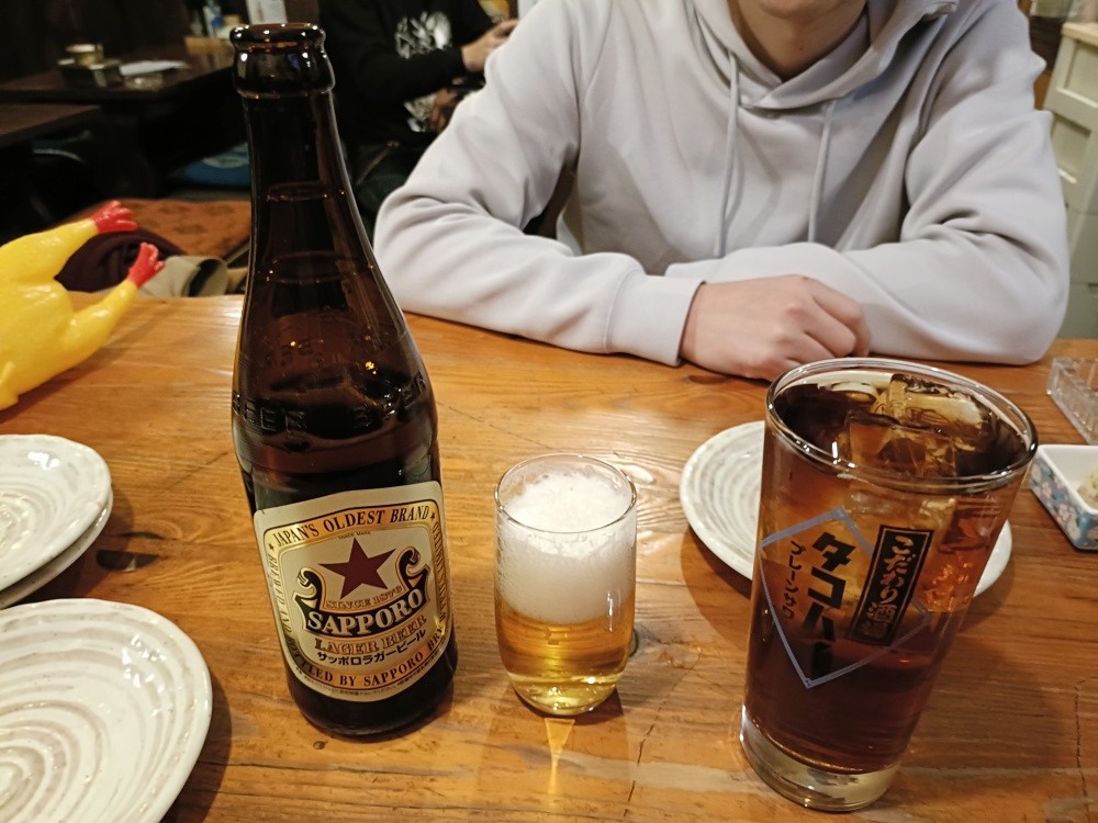 飲み物は友人が瓶ビール、私はウーロンハイをいただきます。