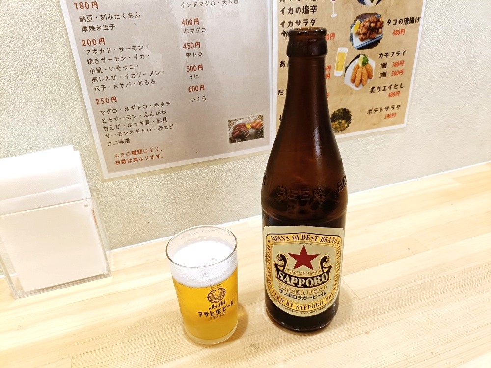 店内でも飲めるということでまずは喉を潤しましょう。大漁丼屋さんは海鮮丼のお店なので、海鮮をおつまみに飲むのも乙なものです。