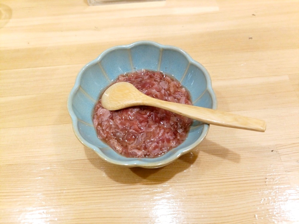 酒盗は思ったより量が多いのがうれしいですね。そして分かってはいたものの、刺激的なくらいの塩加減なのでこれだけで2〜3杯飲めそうです。