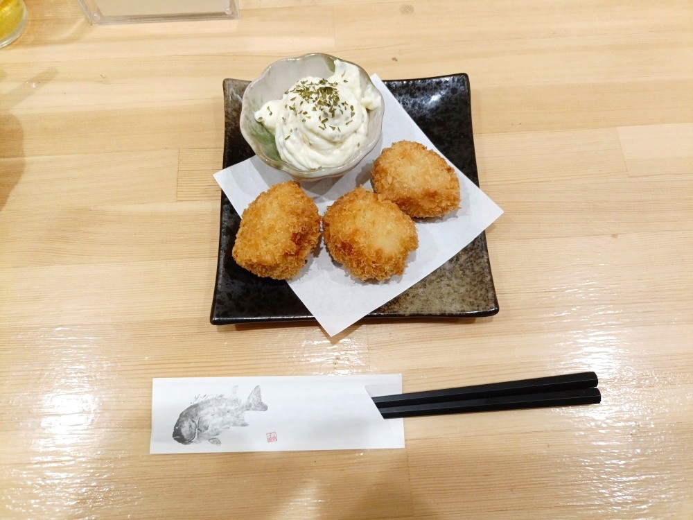 出来立てだから熱々、そしてほくほくででおいしいですね。醤油かタルタルを選べますが私はタルタルで注文しましたが、これが大正解でした。