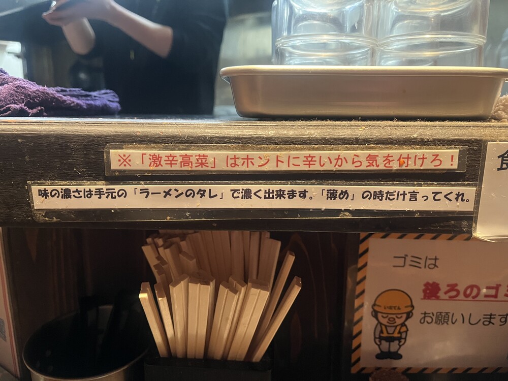 ちょい足しトッピングも工夫されていて、激辛高菜や味を濃くするためのラーメンのタレがあります。