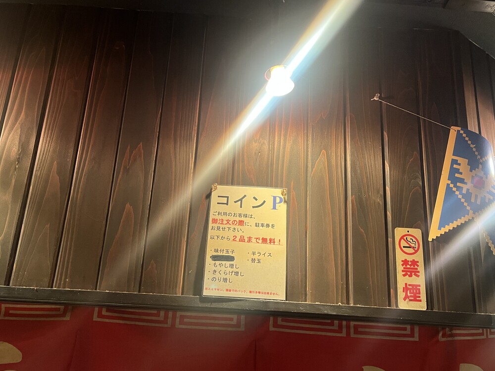2つ目のポイントは、麺処韋駄天は駐車に対応してくれている点です。注文時に駐車券を見せたら、ちょい足しメニューが2品まで無料になるそうです。