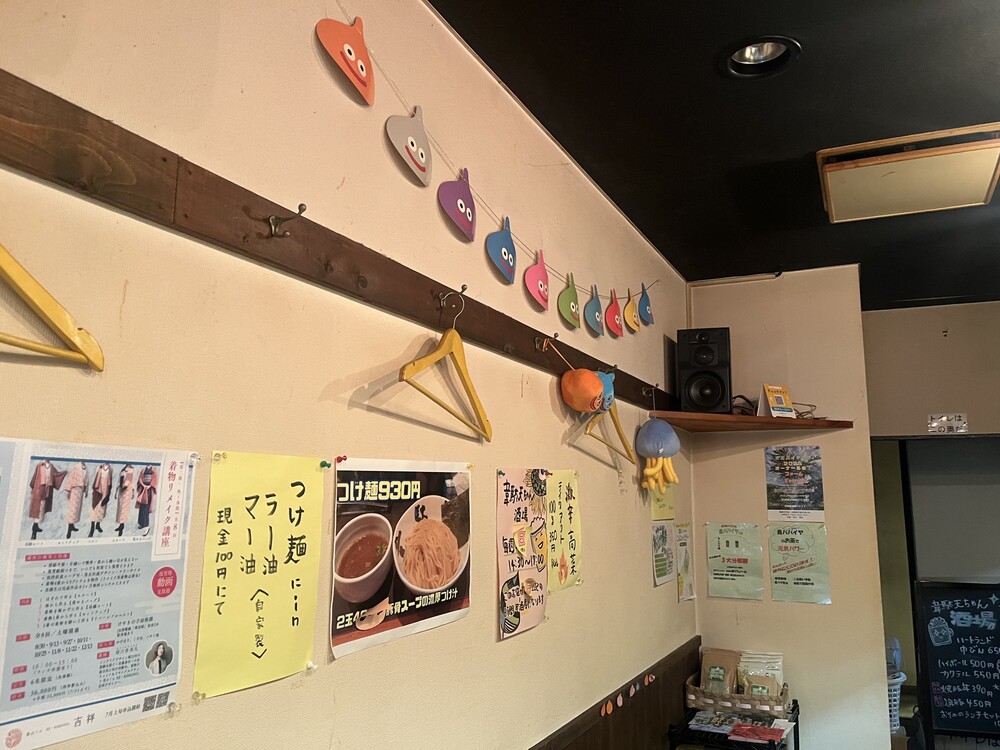 壁にもたくさんスライムたちが飾られています。安らげる空間を感じられることもあってか、来店されるお客さんの多くは女性だそうです。ラーメン店なのに女性も楽しめる雰囲気作りがよいのでしょう。