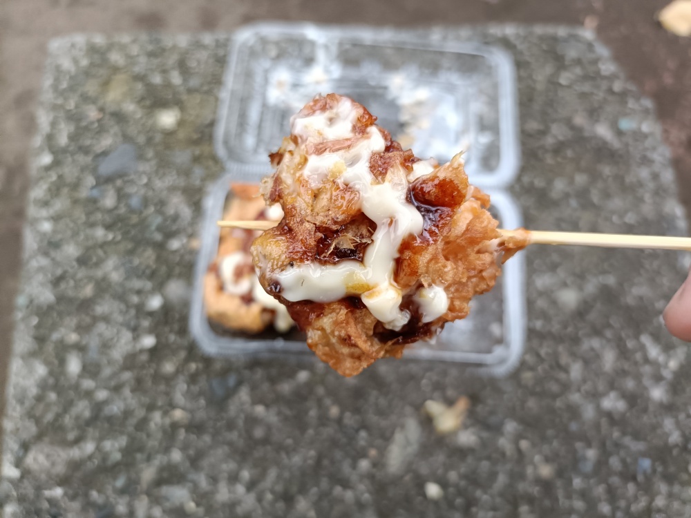見た目はとりのから揚げのようですが、中身はまごうことなきたこやき。