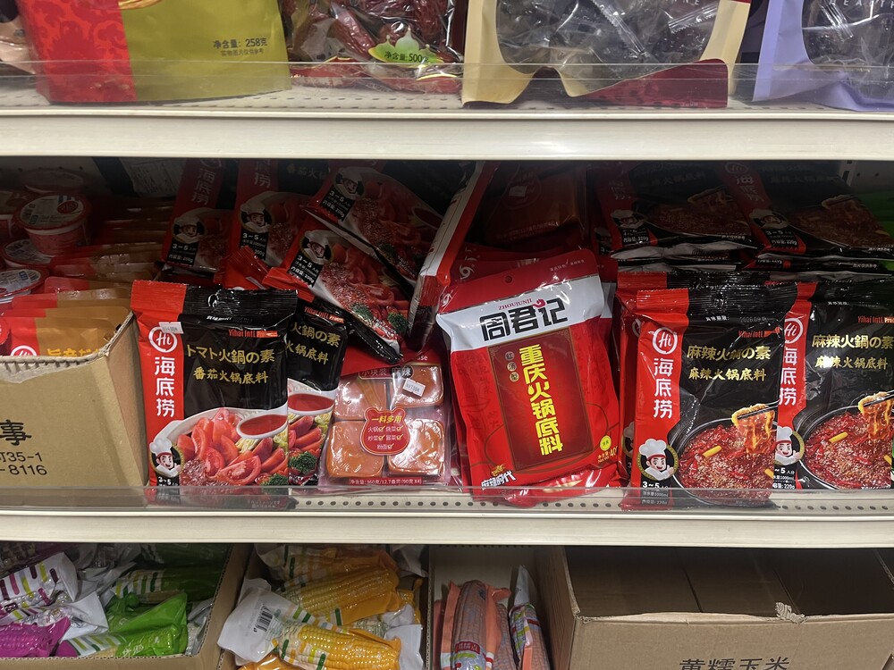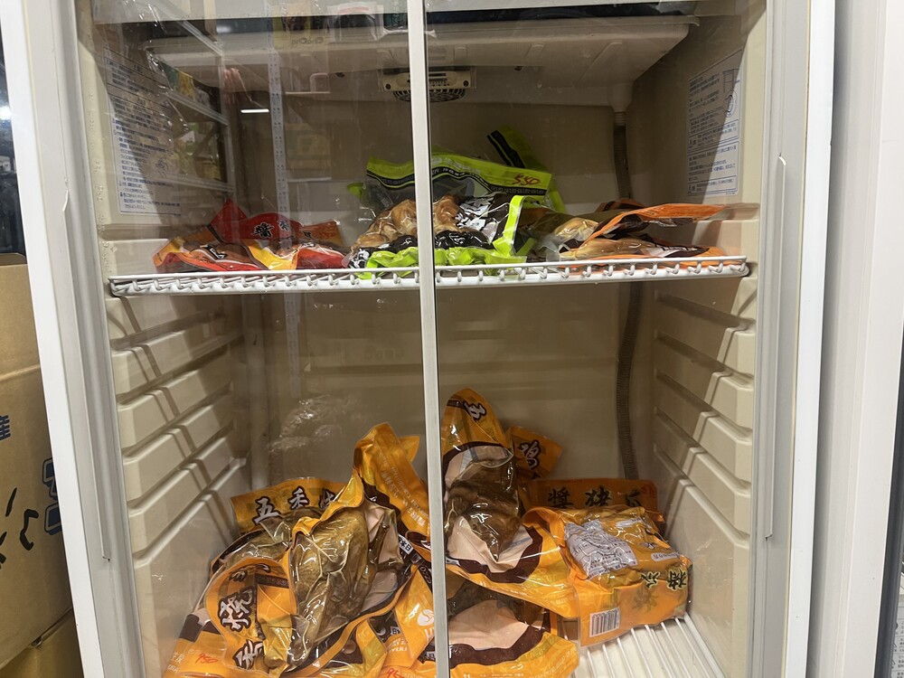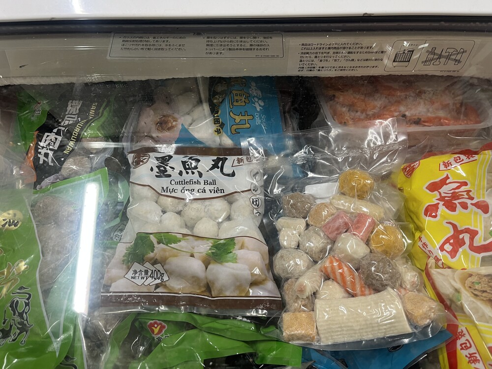 上の写真のラム肉や墨魚丸、魚丸は鍋の具材に適していて、アジアの人がしゃぶしゃぶなどに買って帰るようです。
