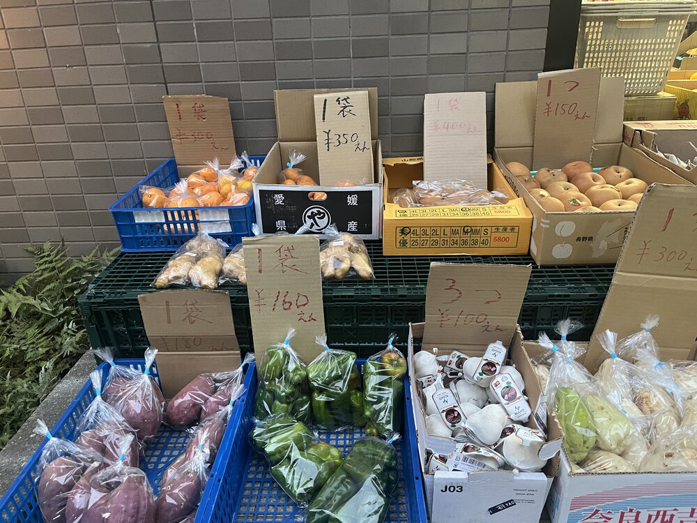 こちらの写真に写っているのはほんの一部。ほかにも梨やたまねぎも販売しています。私がうかがったときは、近隣に住むアジアの方が手に取っているのを目にしました。