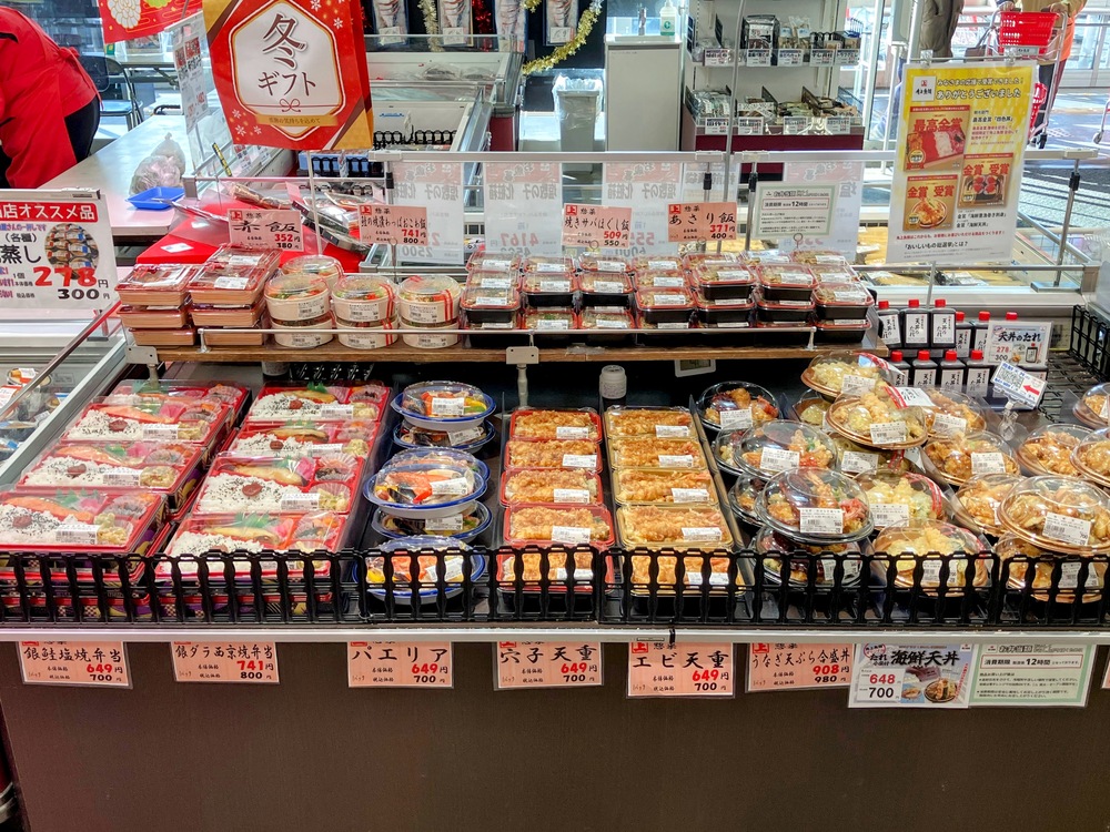 レジ近くでお弁当も販売しています。