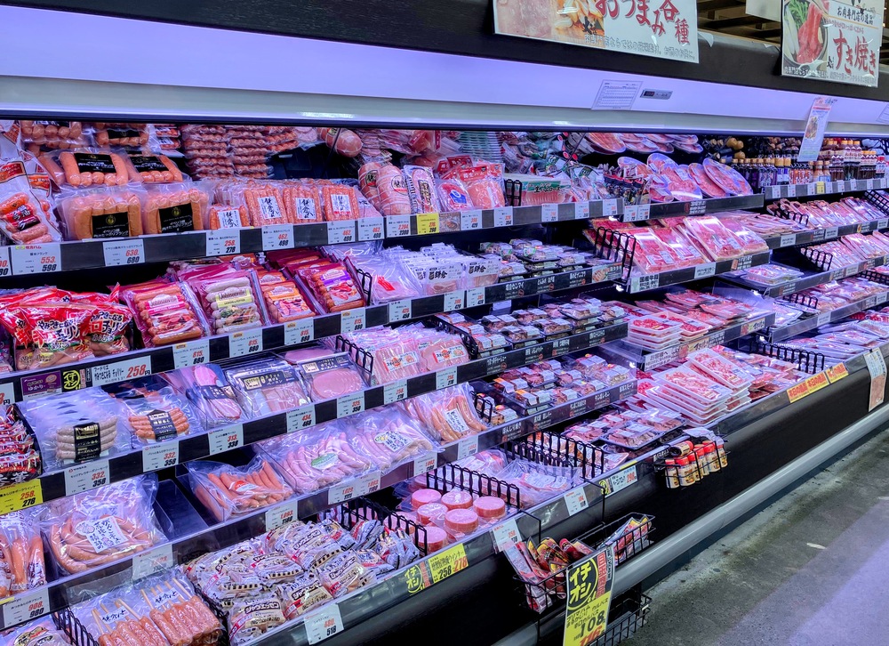 こちらが肉処の大久保のコーナーです。こちらでは、いろいろな種類の肉が取り揃えてあります。どれも鮮度が良くて、とにかく量が多くサイズも大きいんですよ。